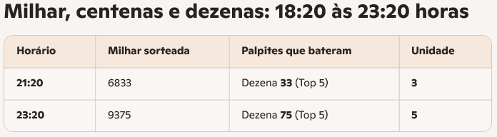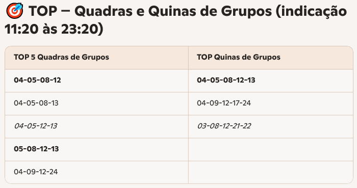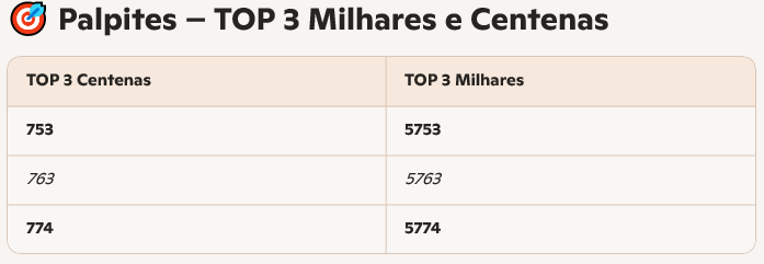 Os palpites são apenas combinações numéricas aleatórias e não garantem acertos em nenhum jogo. Seu uso é pessoal e livre, cabendo a cada jogador decidir como utilizá-los. A loteria legal e regulamentada é a da plataforma Tradicional.bet, que possui certificação oficial e sorteios transparentes.