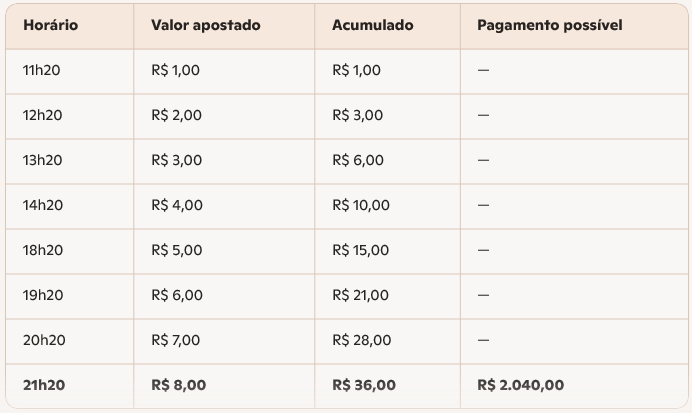 - O sistema de aposta progressiva mostrou-se altamente lucrativo.
