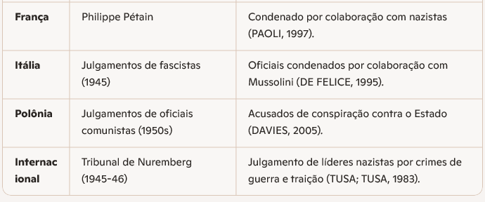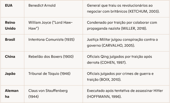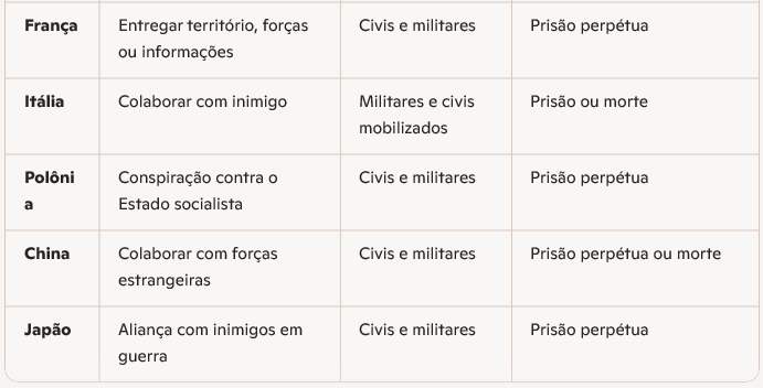 - Internacionalização: após Nuremberg e Tóquio, a traição passou a incluir crimes contra a paz e a humanidade.