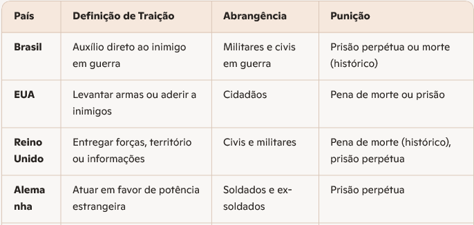 - Universalidade: todos os países tratam a traição como crime gravíssimo.