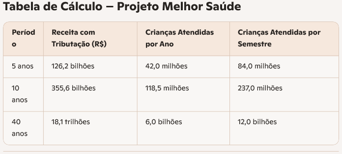 Se houvesse tributação, poderíamos transformar o Brasil em referência mundial em saúde preventiva infantil, atendendo milhões de crianças e adolescentes com exames completos, duas vezes por ano, garantindo dignidade e futuro para a população.